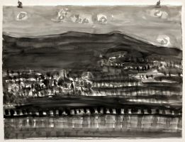 Themen: Räume Technik: Tinte, Aquarell auf Papier // Acryl auf Textilgewebe, Karton grundiert, PAE // Masse: Diverse zwischen 15 und 63 cm sowie auf Rollen zwischen 5 - 10 m x 53 cm
